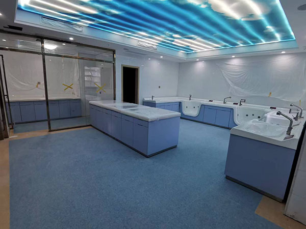 婴儿洗浴中心由婴儿洗礼池,婴儿游泳池,护理平台,抚触软包台,洗手池等组成。洗礼池和游泳池,洗手池,护理平台,转角平台都采用面层为APMMA高分子复合材料一体成型,表面细菌残留量远远低于不锈钢,人造石,陶瓷盆和其他普通塑料。婴儿洗澡池底部圆滑突起设计;给婴儿一防滑支撑点,防止婴儿在池内滑动,造成意外呛水。